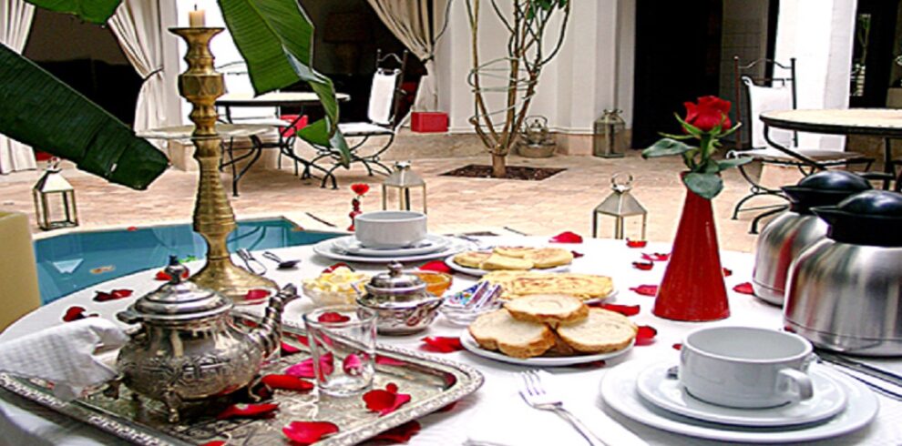Chaque matin, laissez-vous séduire par notre petit-déjeuner traditionnel, préparé avec soin pour bien commencer votre journée. Pour le déjeuner ou le dîner, notre coin repas vous propose une sélection de délices de la cuisine marocaine, vous plongeant au cœur des saveurs locales.
